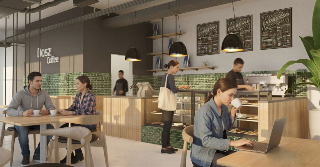 The result is a grounded yet contemporary café that balances operational efficiency with atmosphere. By layering natural materials and biophilic elements within the existing shell, the project transforms a utilitarian structure into a welcoming, enduring space designed to support both everyday use and long-term relevance.